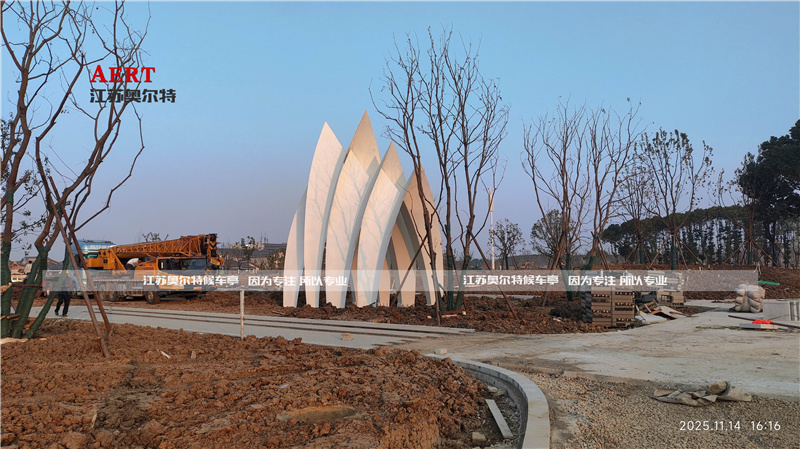 以下是江苏奥尔特候车亭厂家为江阴设计生产的廊(láng)架雕塑拱门(1:1还原(yuán)):