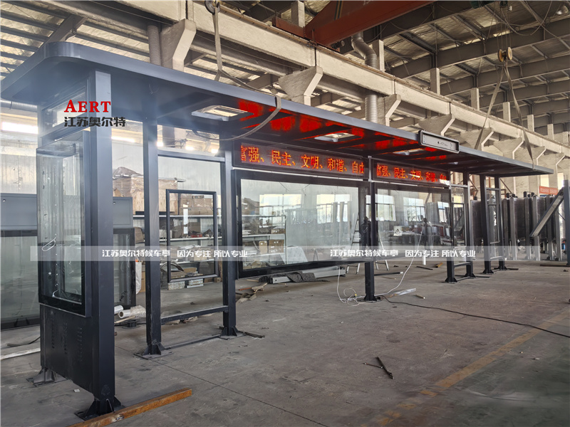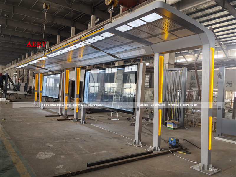 2. 材质与工艺:苏州智能候车亭(tíng)主体多采(cǎi)用不锈钢、镀锌钢板等耐(nài)用材质,表面经静电喷塑处理,抗腐蚀、易维护,与图中候车亭的材质选用(yòng)原(yuán)则相同;顶棚常用钢化玻(bō)璃、PC耐力板,兼顾透光(guāng)性(xìng)与(yǔ)抗风性。